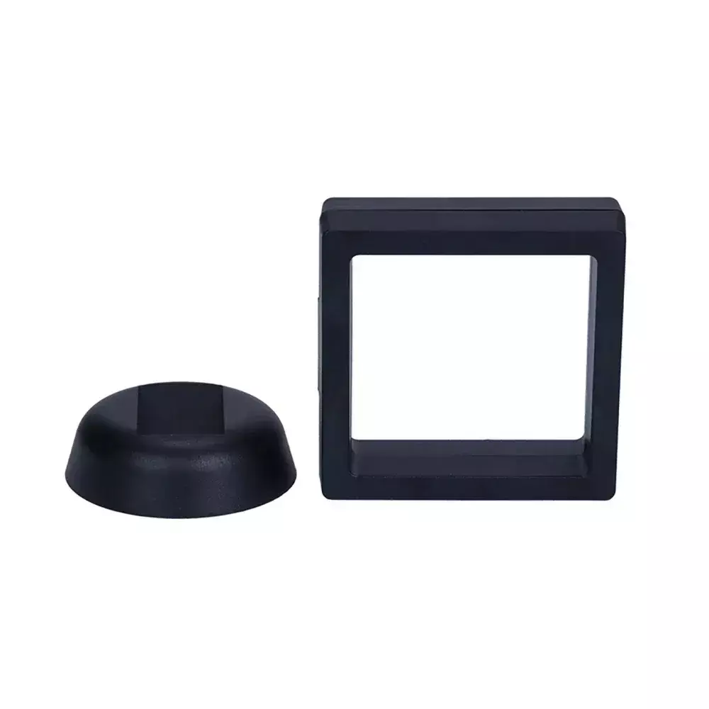 ✨ O Incrível Efeito de Levitação: Suas peças parecem flutuar no ar! Graças à membrana elástica de alta tecnologia, o objeto fica suspenso no centro da moldura, permitindo uma visão 360º de todos os detalhes, sem barreiras visuais.